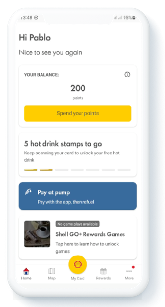Introduced a digital stamps tracker that rewards customers with multiple benefits for repeat visits to Shell sites. Increased retention and engagement by gamifying the experience and offering tangible rewards for loyalty.